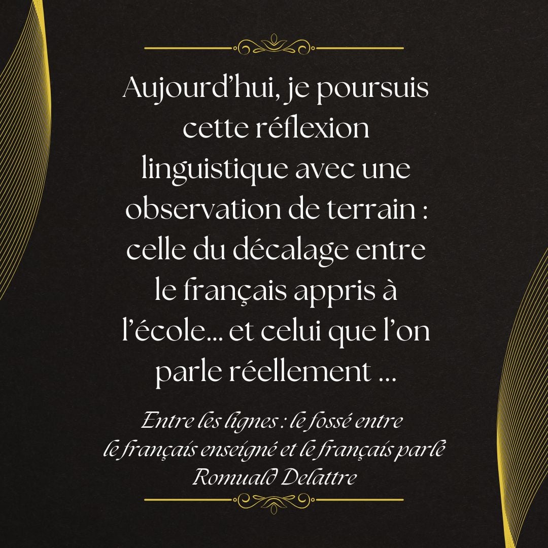 « En effet, après vingt ans passés au Pakistan à enseigner le français et gérer un établissement, mon retour en France m’a révélé l’écart fascinant entre le français académique et celui que l’on parle au quotidien, notamment dans ma famille en Picardie. C’est cette découverte qui m’a donné envie d’écrire sur ce fossé entre la langue enseignée et la langue vivante car je vois ma propre famille confrontée à cette réalité. » - Romuald Delattre