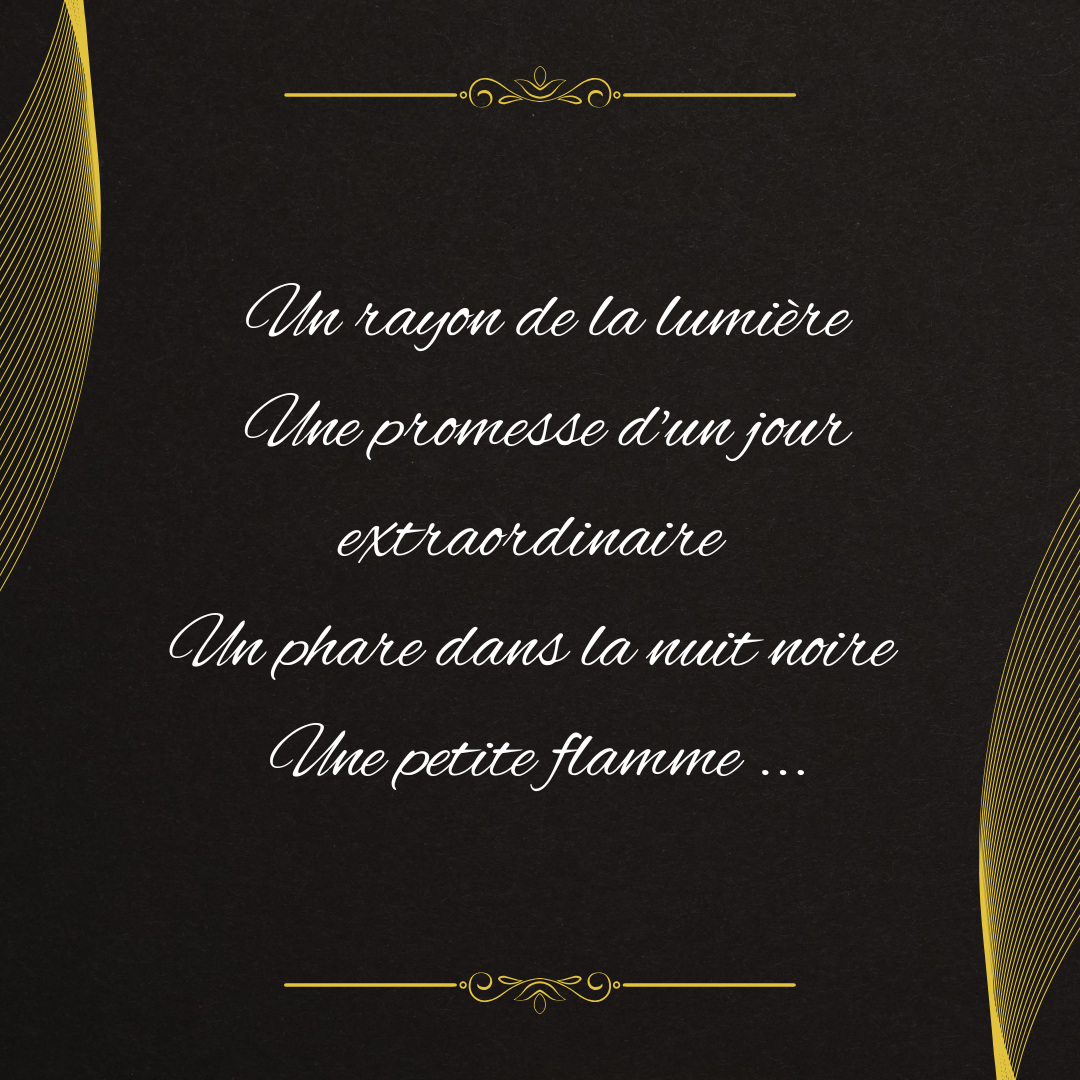Un poème lumineux qui capte toute la douceur et la résilience de l’espoir. Chaque vers est un rappel que, même dans les moments sombres, il existe toujours une lueur qui guide nos pas vers un avenir meilleur.