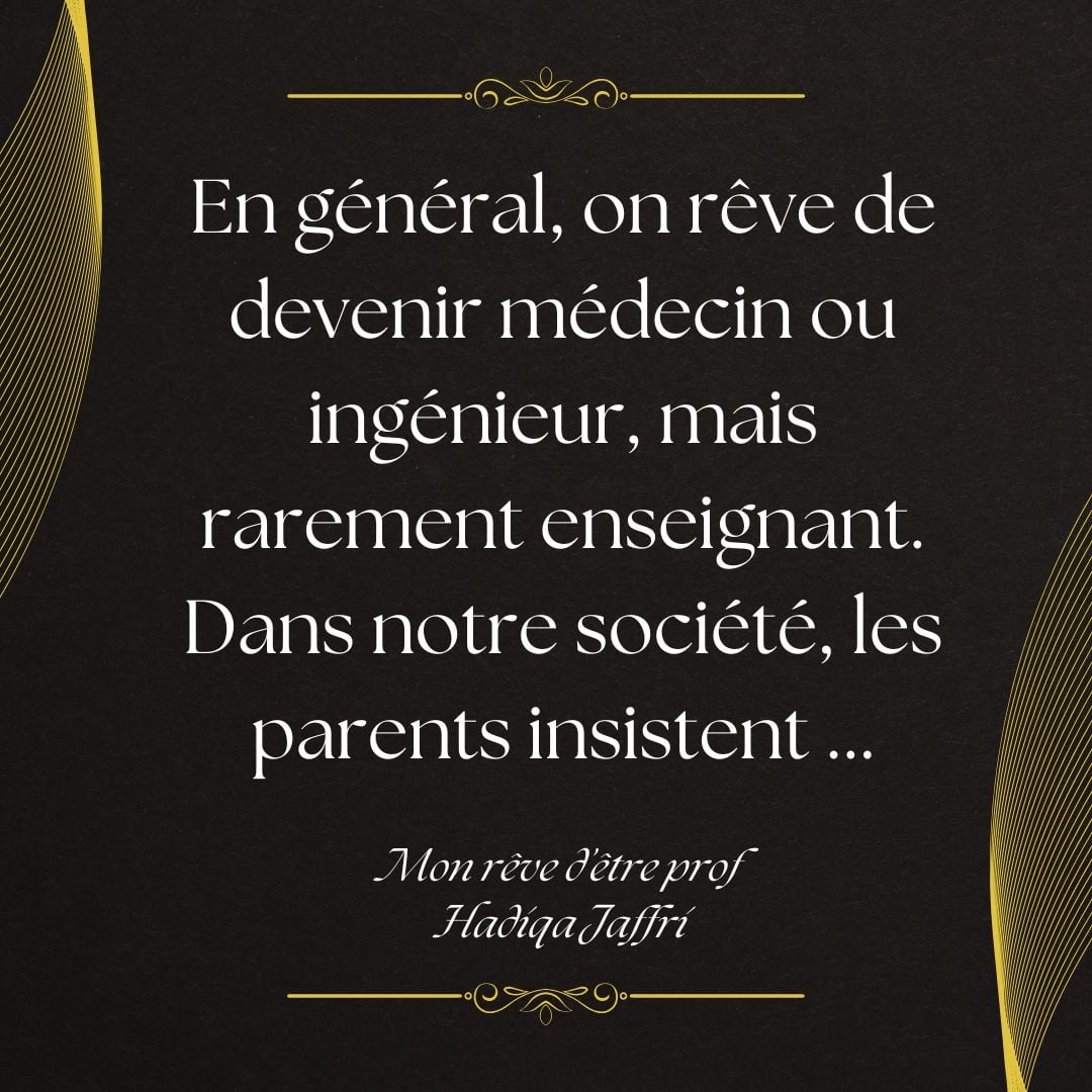 « J’ai voulu motiver les jeunes qui ont envie d’être profs. » - Hadiqa Jaffri