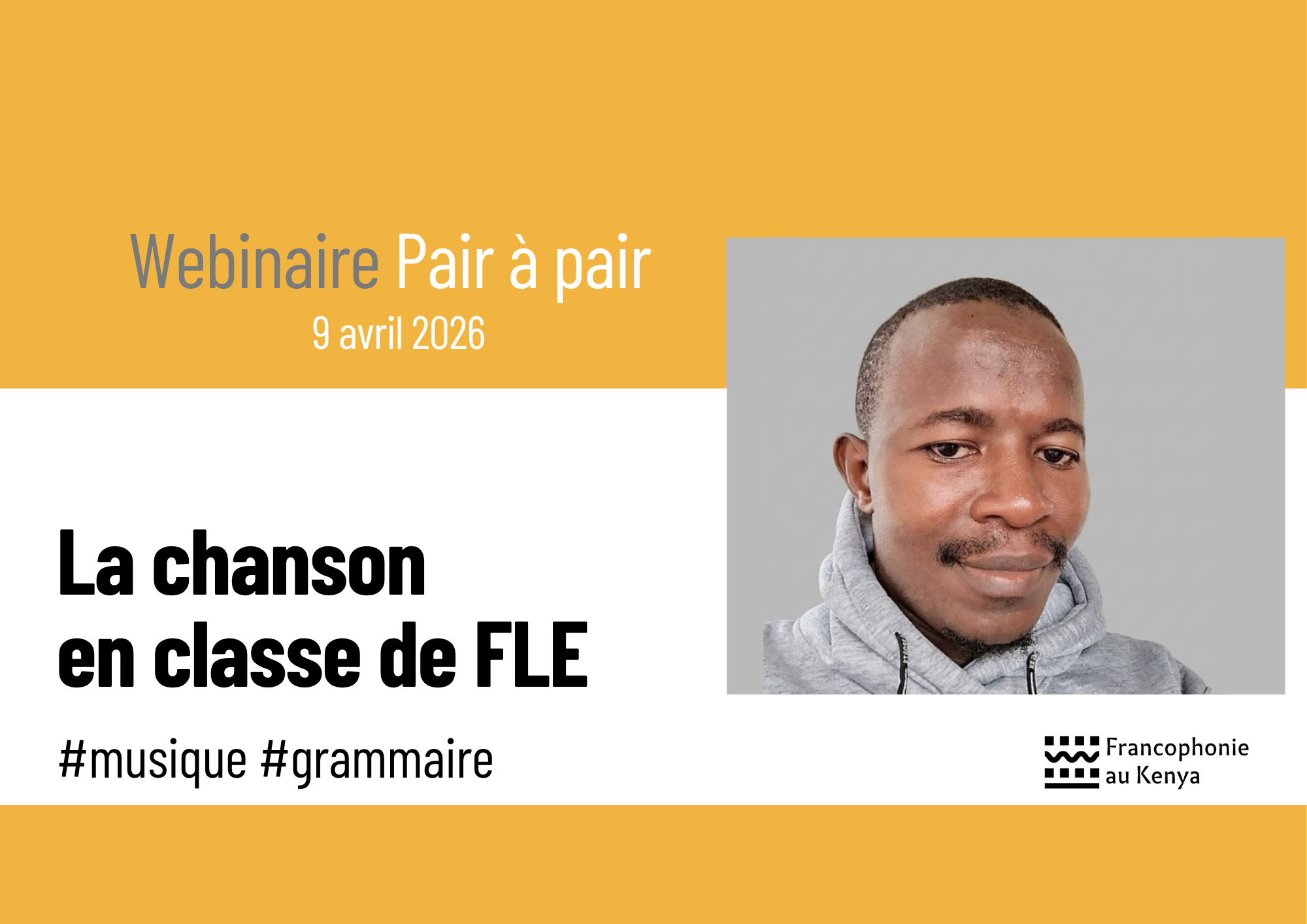 La chanson en classe de FLE, est-ce que ce n'est qu'une histoire de musique ? Et non ! Newton Mawira, professeur kényan de français, vous le prouve dans ce webinaire.