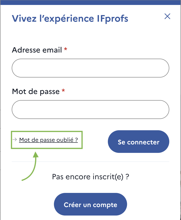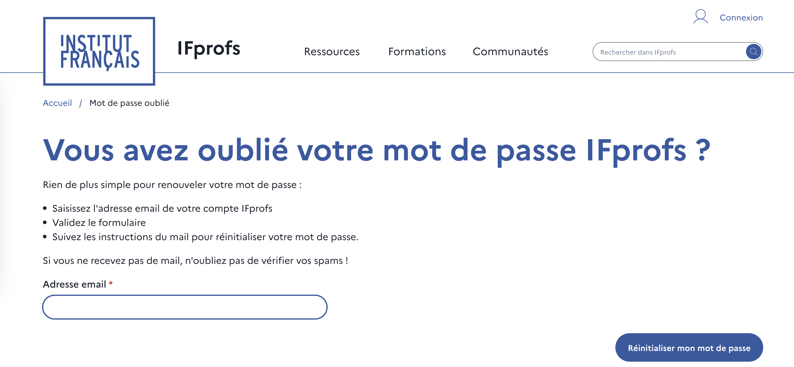 3. Entrez votre adresse e-mail associée à votre compte IFprofs dans le champ prévu à cet effet.