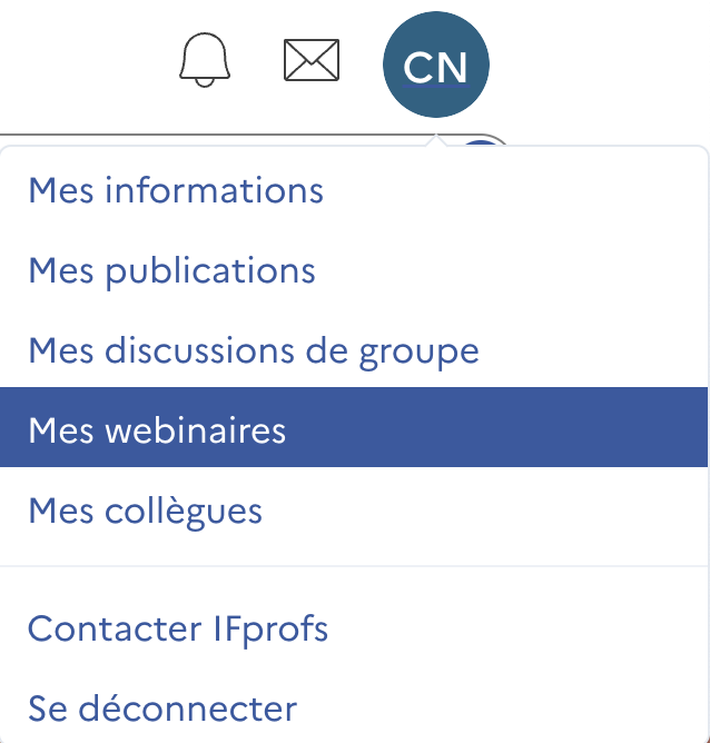 1. Connectez-vous à IFprofs puis rendez-vous sur votre profil en cliquant en haut à droite de l'écran sur votre photo ou vos initiales.
