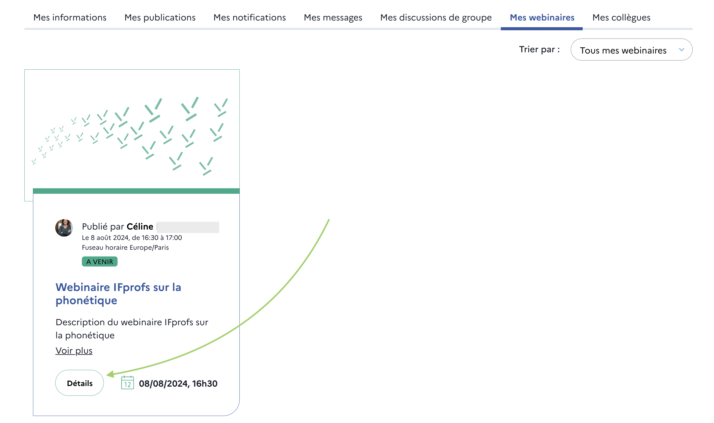 2. Cliquez sur le bouton “Détails” du webinaire concerné